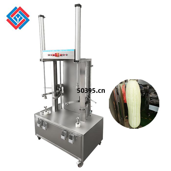 雙頭(tou)瓜果(guo)削(xue)皮機JYXP-106-2適用(yong)於木瓜(gua)、哈(ha)密(mi)瓜、西(xi)瓜等(deng)瓜果削皮,削(xue)皮厚(hou)薄可(ke)調,方便(bian)。刀組(zu)上(shang)下自動循環削切效(xiao)率(lv)高(gao),去(qu)皮率(lv)達到95%以上(shang)。削皮刀架(jia)設(she)計(ji),可(ke)使瓜(gua)皮定(ding)向排(pai)出,方(fang)便收(shou)集清理。機器拆(chai)洗方(fang)便(bian),使用(yong)時(shi)操作簡(jian)單(dan),衛(wei)生,適(shi)合餐飲行(xing)業(ye),飯(fan)堂,食品(pin)加(jia)工(gong)廠使用(yong)。